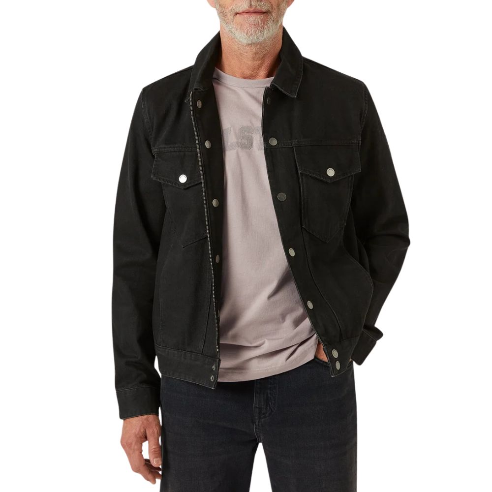 The Piston jacket in Washed Black is based on a 1970’s archival Belstaff garment in a rugged trucker silhouette. This season, it has been updated for the warmer weather in rigid denim that has been washed for a worn-in effect.