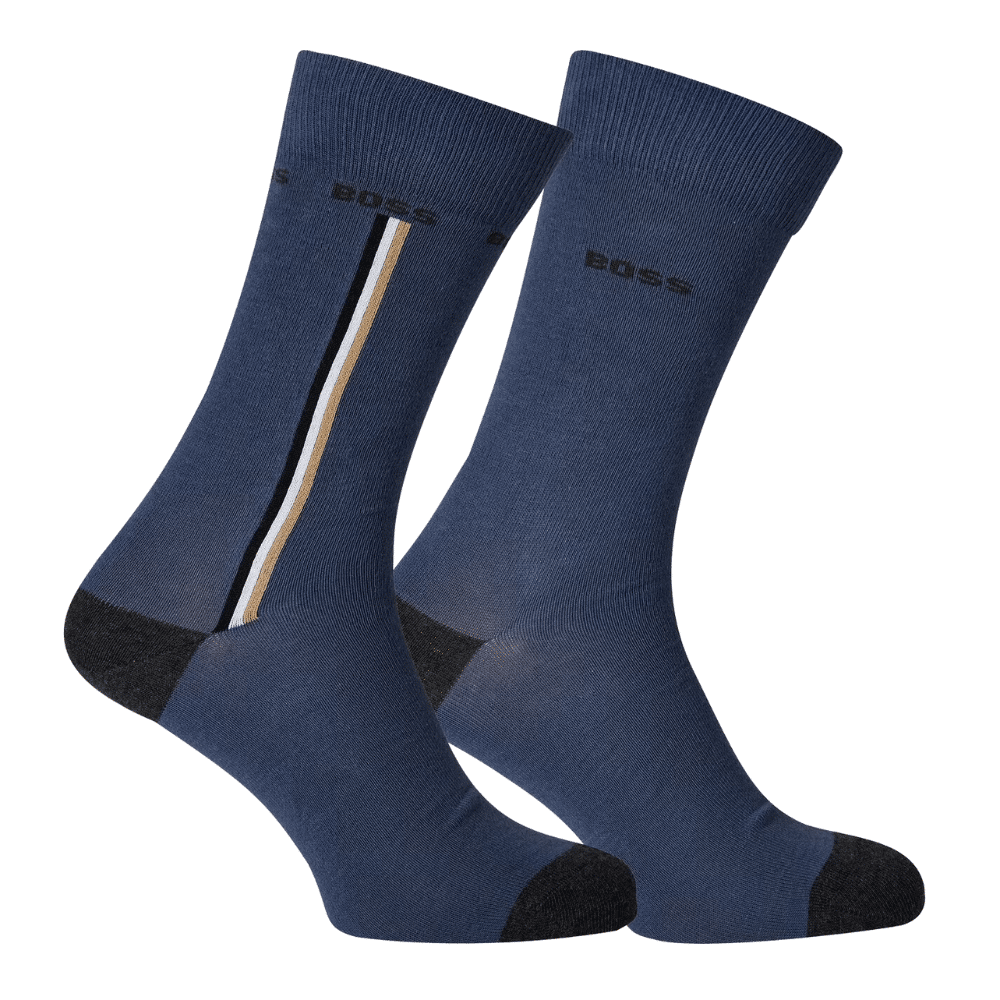 Two pairs of expertly crafted socks by BOSS. Featuring a signature stripe on one pair and the BOSS branding on both, these regular-length socks are blended with stretch for lasting shape retention and have been combed for softness, ensuring all-day comfort.