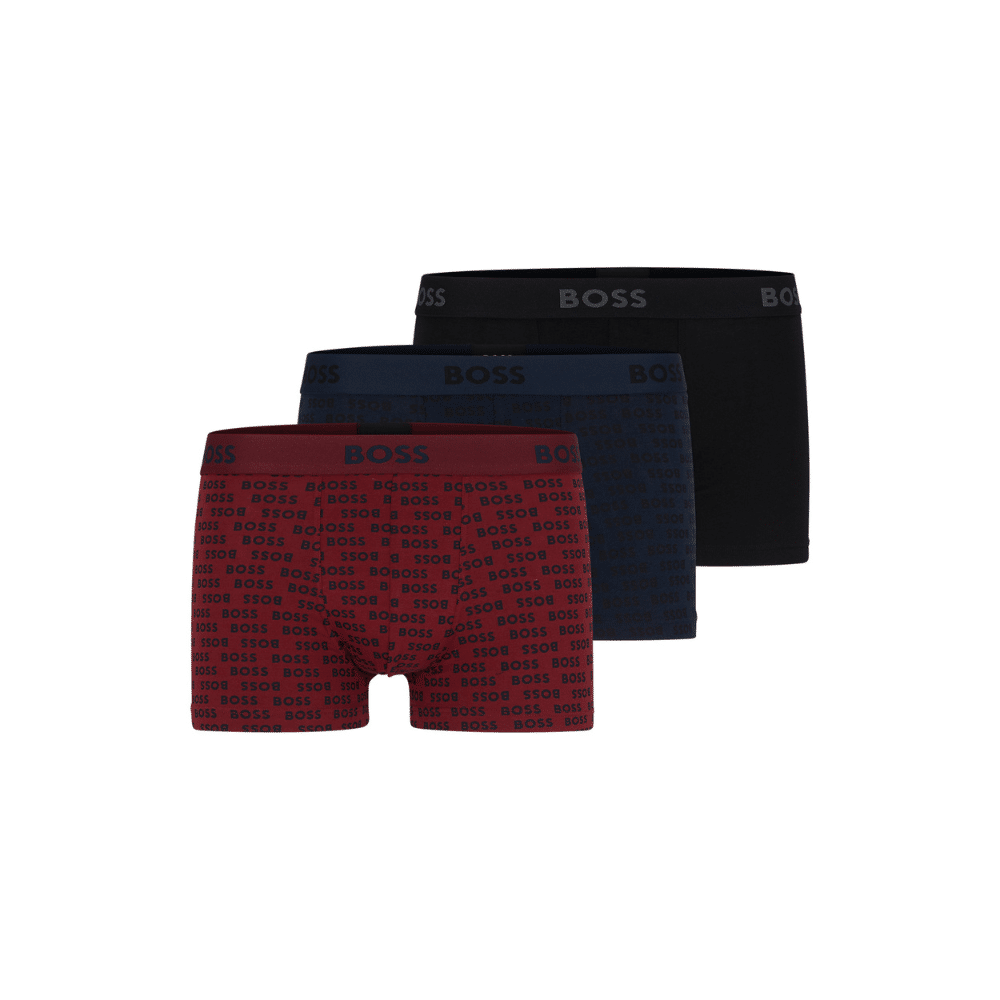 A gift-boxed triple-pack of repeat-logo and plain trunks by BOSS, crafted in stretch cotton with regular-rise logo waistbands.