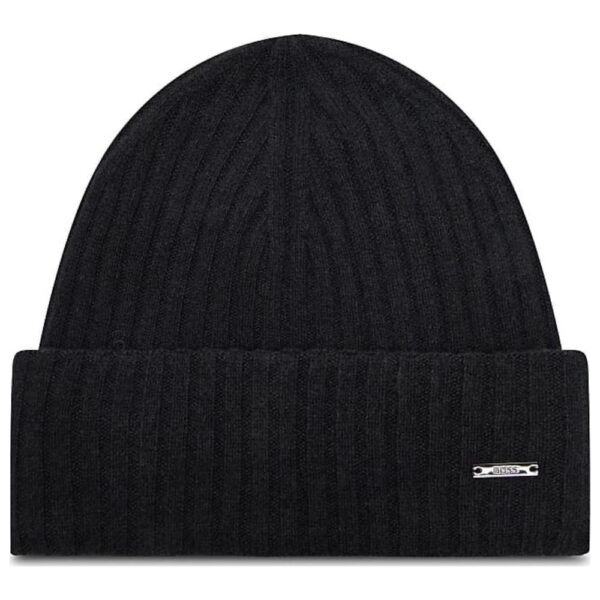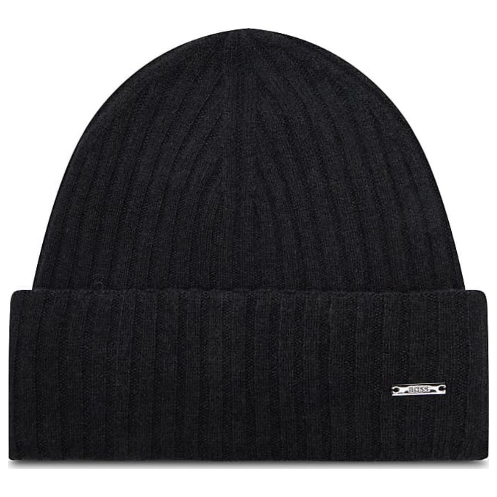 A signature beanie hat by BOSS. Featuring a branded metal plaque, this luxe accessory is knitted with a ribbed structure in cashmere and virgin wool.