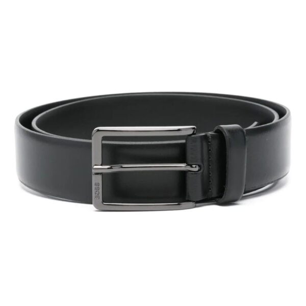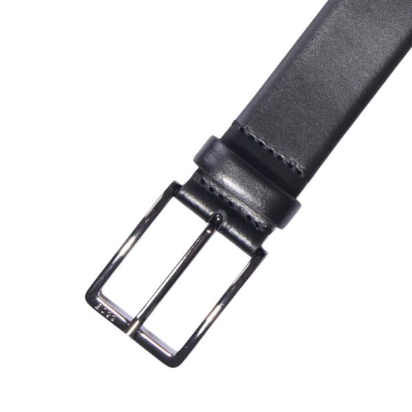 An elegant Black 3.5cm smooth black belt by BOSS made in Italy from Italian leather with a logo-engraved buckle in dark chrome finish. For the best fit, we advise ordering a belt one size larger than your waist size.