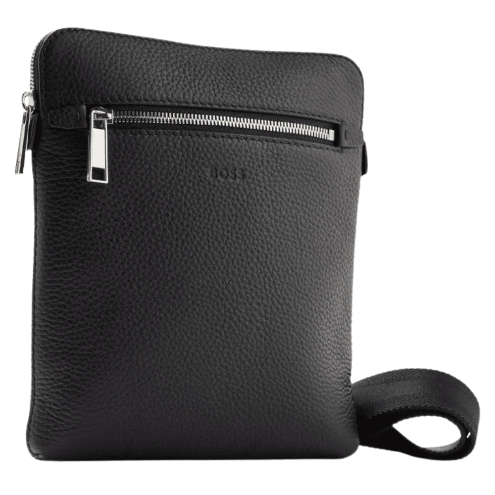 Be the first to review “BOSS Black Grained Italian-Leather Envelope Bag With Front Zip Pocket”