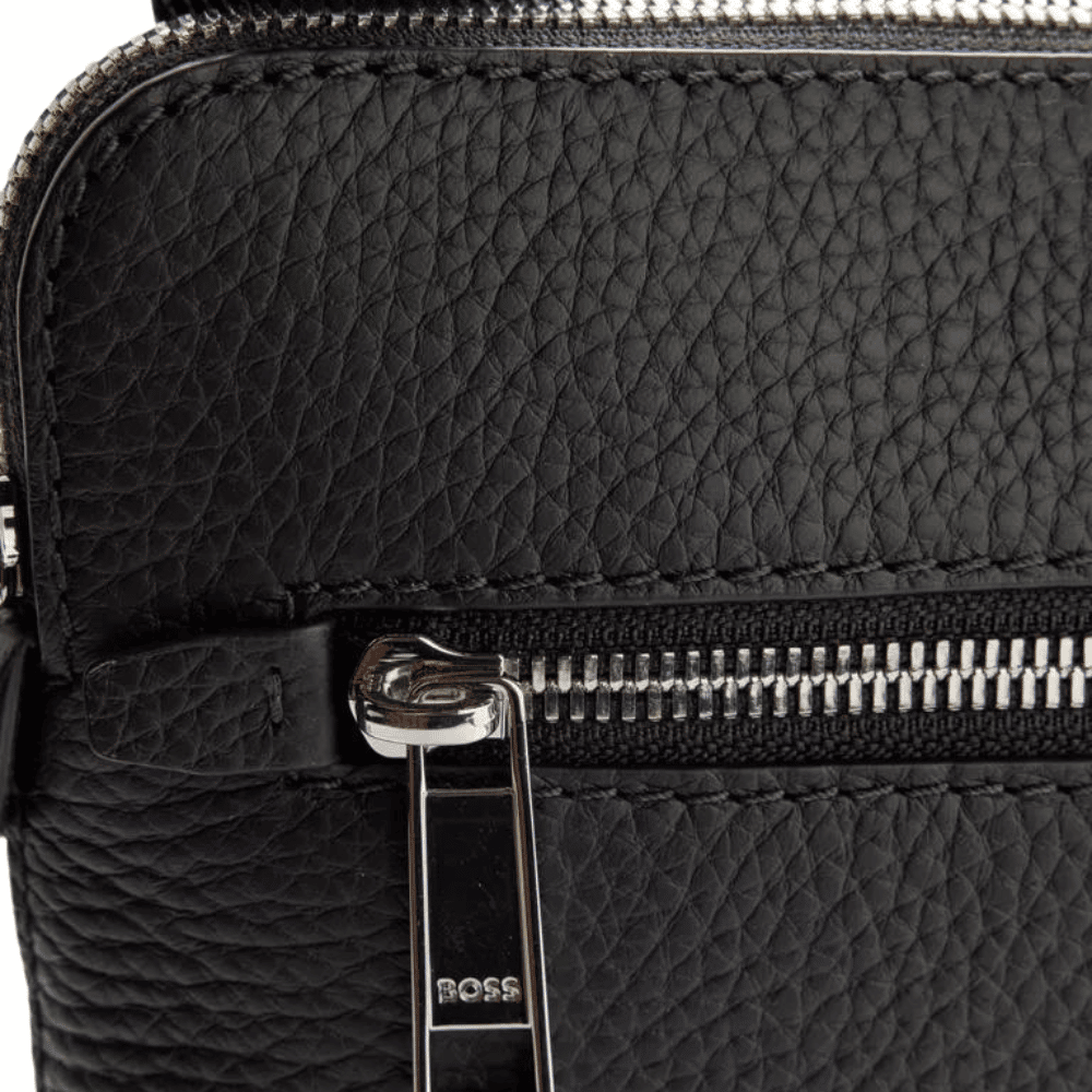 BOSS Black Grained Italian-Leather Envelope Bag With Front Zip Pocket
