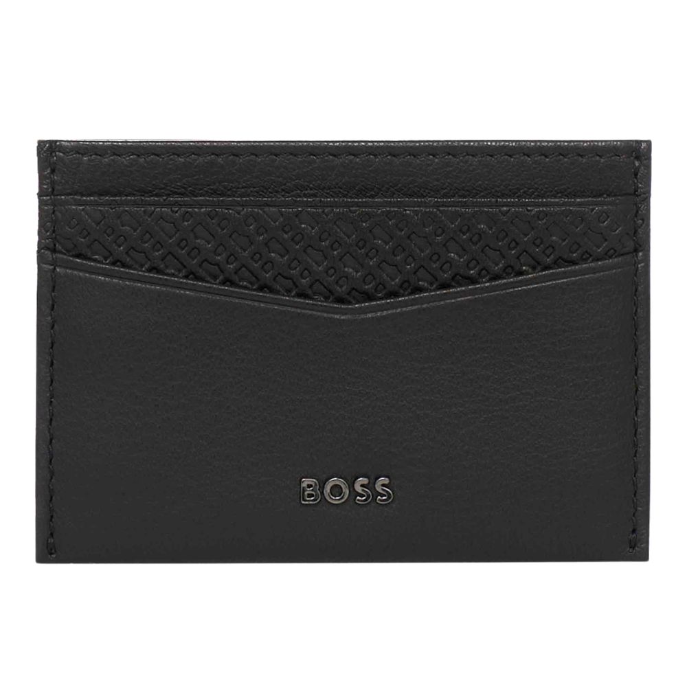 The BOSS Black Leather Patterned Card Holder is crafted from premium black leather with a subtle textured finish. Sleek and compact, it offers a refined way to organise your essentials while maintaining a minimalist look.