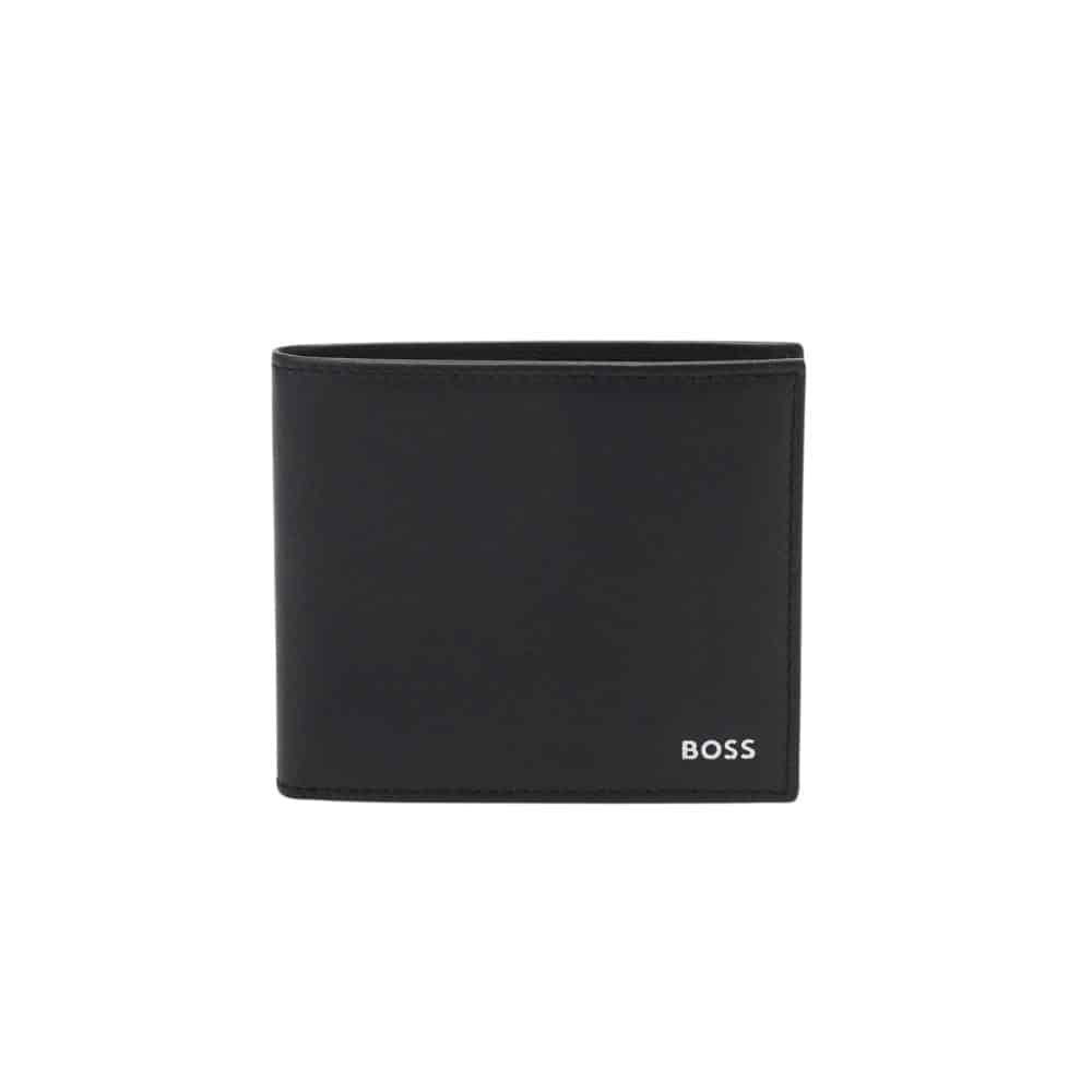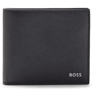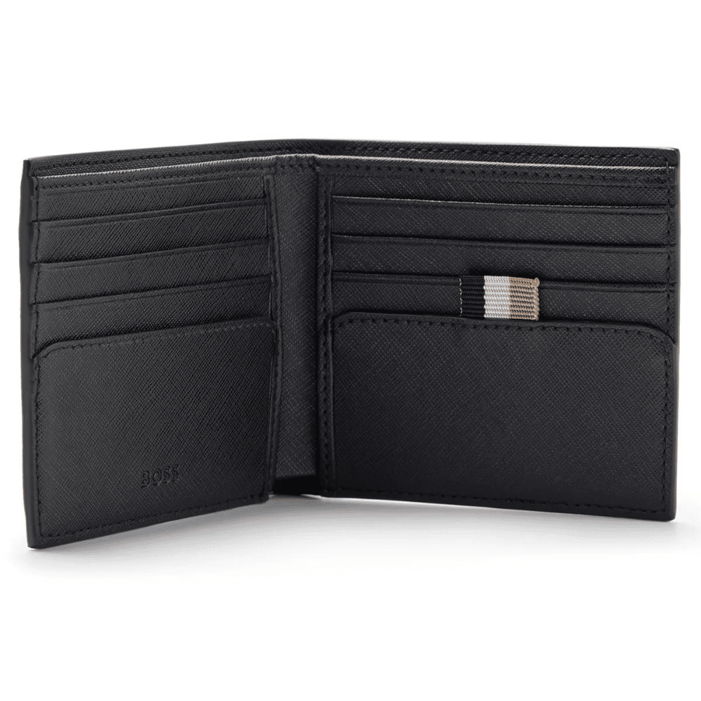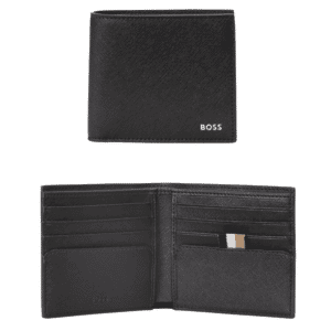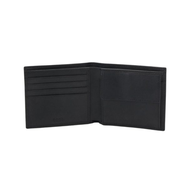 This BOSS Randy black Wallet is finished with a sheepskin leather exterior and a textile lining to give it its superior hold and strength. Embroidered with the Boss signature logo on the front this wallet comes with 4 card slots as well as two pockets for notes and a pouch for coins.