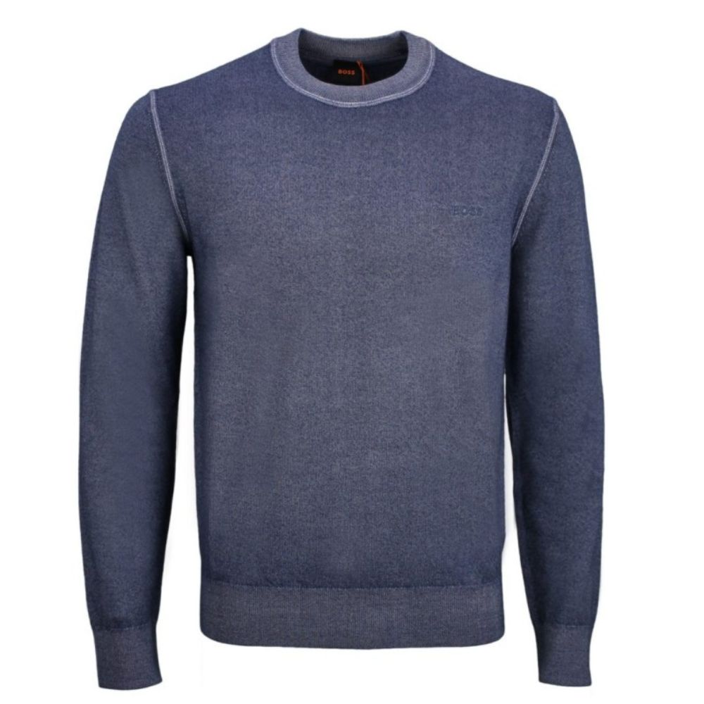 The BOSS men’s knit sweater Astefo in blue is an elegant sweater for men, ideal for leisure, the office, or casual looks. The heathered look gives the sweater a modern character, while the classic regular fit ensures a comfortable fit. Made from pure new wool, the sweater offers a pleasantly warm feel against the skin and a soft touch. Fine knit and ribbed cuffs and hem complete the design in a functional and stylish way, complemented by subtle label stitching at the hem.