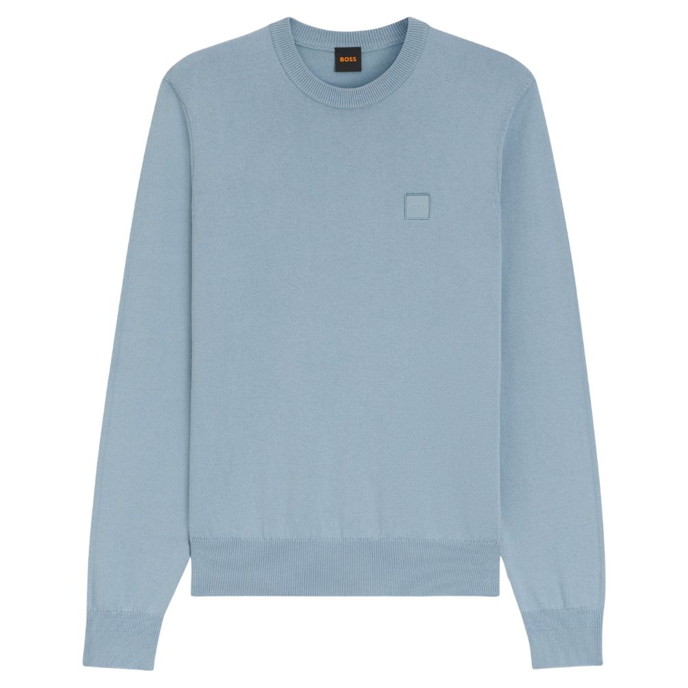 BOSS Blue Cotton Cashmere Regular Fit Sweater With Logo Patch