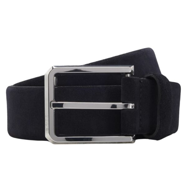 With an angular buckle in polished hardware, this 3.5cm BOSS Menswear belt strikes a modern note for business or casual looks. Crafted in soft suede. For the best fit, we advise ordering a belt one size larger than your waist size. We continuously look for more responsible ways to produce and finish our products. A minimum of 60% of the leather used to make this product has been sourced from certified tanneries.