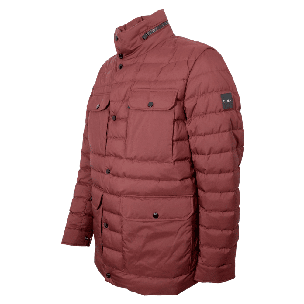 A protective jacket in a regular fit by BOSS Menswear. Filled with sustainably sourced duck down and feather for lightweight insulation, this water-repellent jacket is crafted in laminated poplin with a two-layer construction. The left sleeve is trimmed with a BOSS logo badge.