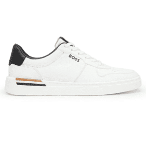 Add some smart-casual designer look to your wardrobe with the white Clint Tennessee leather trainers from BOSS. Featuring signature stripes on the white sole, corporate signature logo and blind eyelets. They’re ideal for urban trips and weekend outings in style.