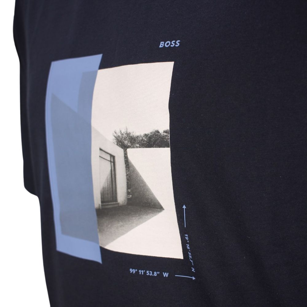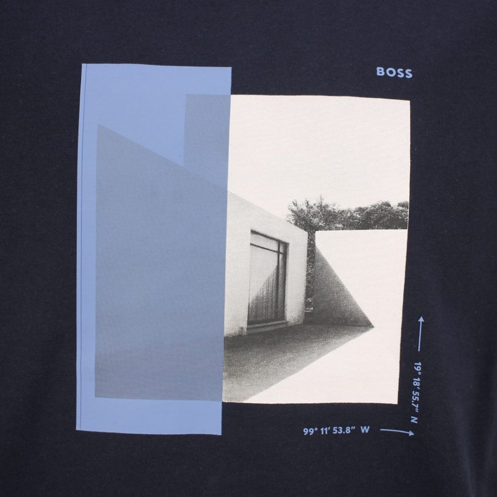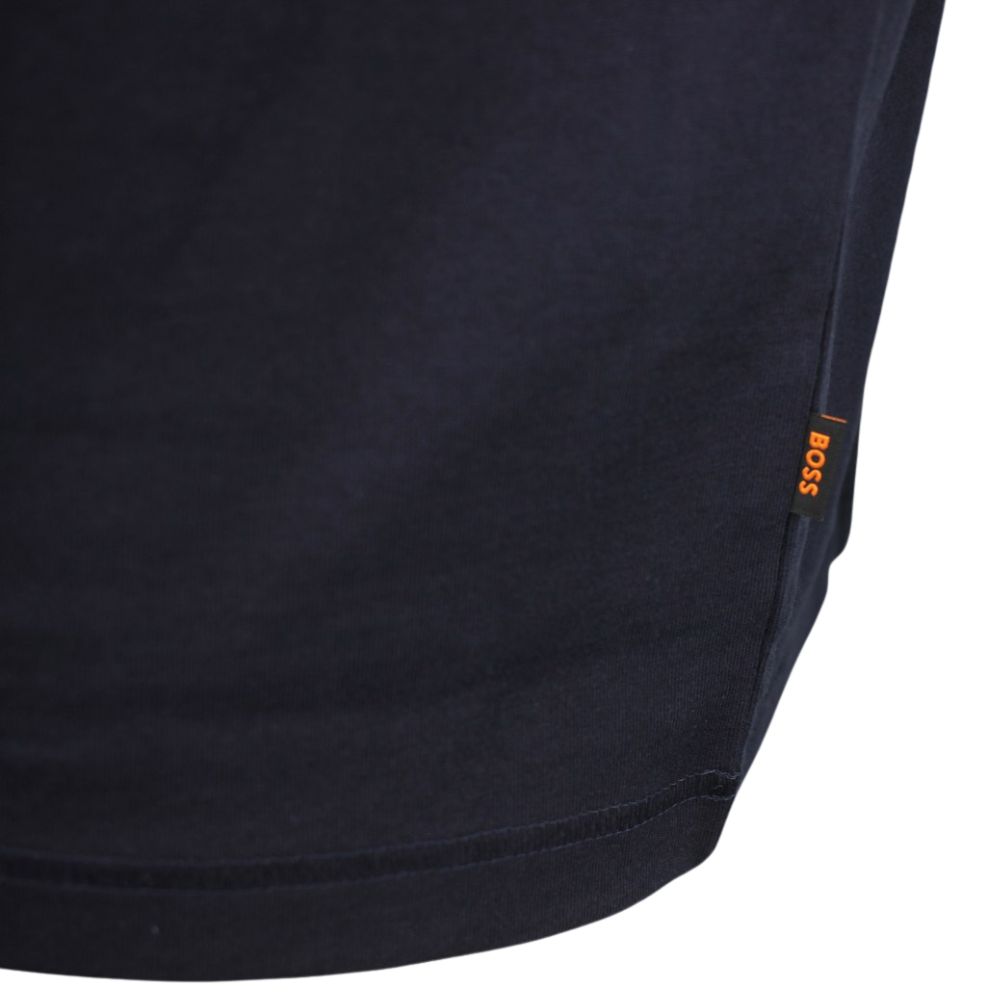 The BOSS men’s T-shirt Te Barragan in dark blue impresses with its modern style and high level of comfort. The oversized cut with dropped shoulders gives the T-shirt a casual silhouette that is ideal for relaxed looks. A classic round neckline and the eye-catching print on the chest set fashionable accents and underline the urban character of the design. Made from particularly soft cotton jersey, the T-shirt feels comfortable on the skin all day long. The standard length makes it versatile to combine – whether with jeans, shorts or chinos. The plain dark blue can be easily integrated into a wide variety of outfits and makes the Te Barragan T-shirt a stylish basic for your casual wardrobe.
