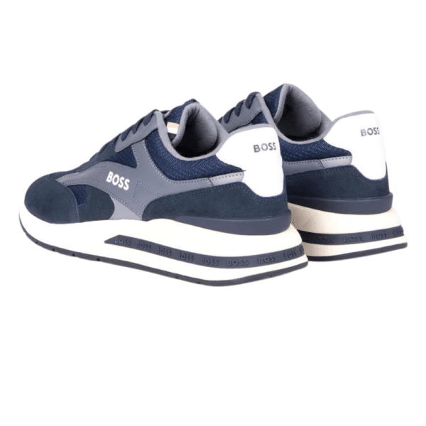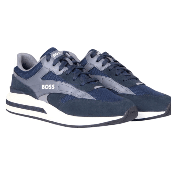 Branded Dark Blue trainers in mixed materials including soft suede by BOSS.