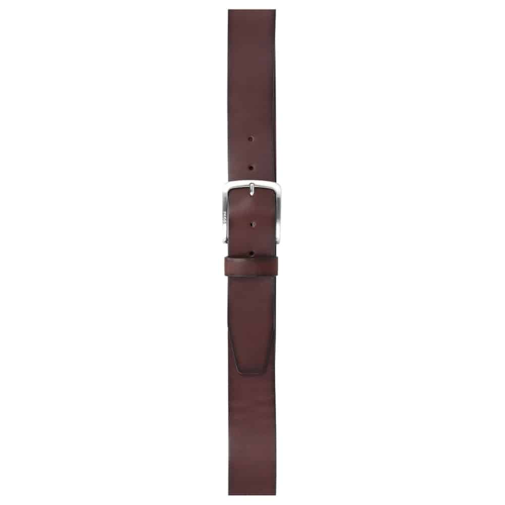 A timeless belt by BOSS, crafted in leather. This belt features a buckle crafted in silver hardware with a mix of brushed and polished finishes. An engraved BOSS logo gives a signature sign-off. For the best fit, we advise ordering a belt one size larger than your waist size.
