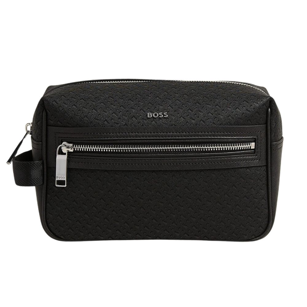 BOSS Daxter Monogram Leather Washbag Black