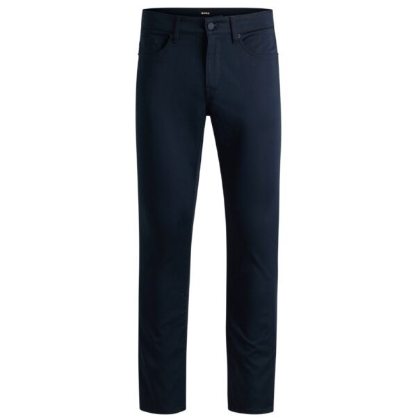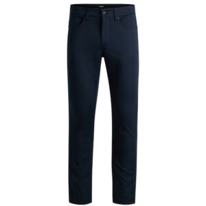 With their sharp fit, these BOSS Menswear trousers make a modern casual foundation. Crafted in soft-touch satin with added stretch for flexibility. This product’s raw material is derived from regenerative agriculture: an approach focused on preservation and restoration that aims to increase biodiversity, preserve water quality and improve soil health while absorbing CO2. Regenerative agriculture also promotes animal welfare and fair working conditions for farmers.