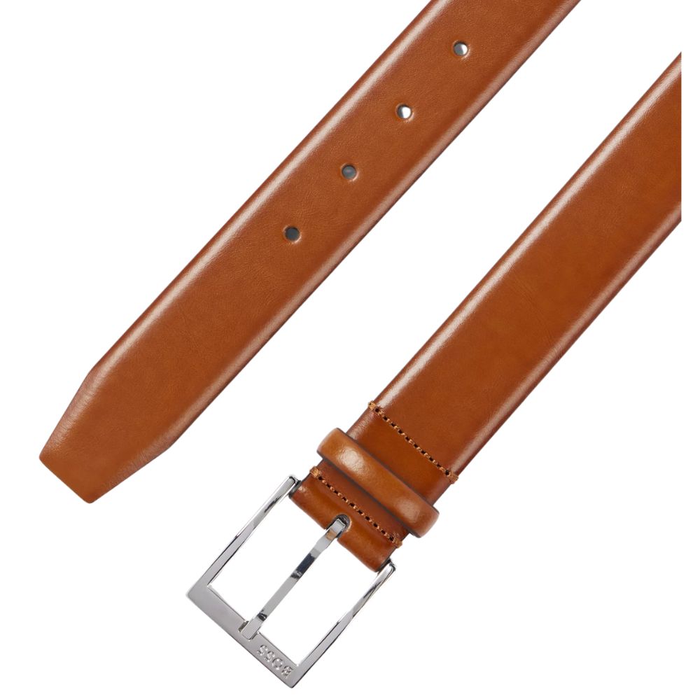 A refined 3.5cm Brown Leather belt made in Italy from smooth leather with a logo-engraved buckle in silver-tone hardware by BOSS. For the best fit, we advise ordering a belt one size larger than your waist size.