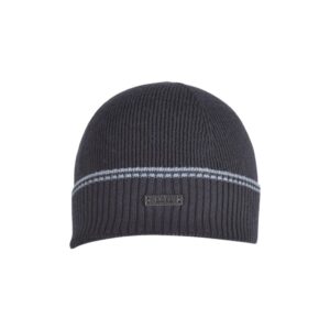 BOSS Ernesto Dark Blue Beanie And Scarf Gift Set. A ribbed knitted beanie style hat with classic turn up detail featuring woven twin tipping in light blue. The turn up features the signature BOSS logo leather patch on the left in black. A woven knit two toned scarf in Dark blue and Light blue with woven tassels at each end. The signature BOSS logo leather patch is situated at one end in black. 85% Cotton. 15% Wool.