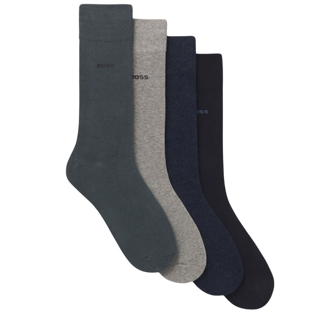 The BOSS Four-Pack of Regular Length Socks with Logos delivers everyday comfort and refined style. Crafted from a soft, breathable cotton blend, each pair ensures a smooth feel and lasting wear. Subtle BOSS logo detailing adds a touch of sophistication. A practical and stylish essential for both work and casual outfits.