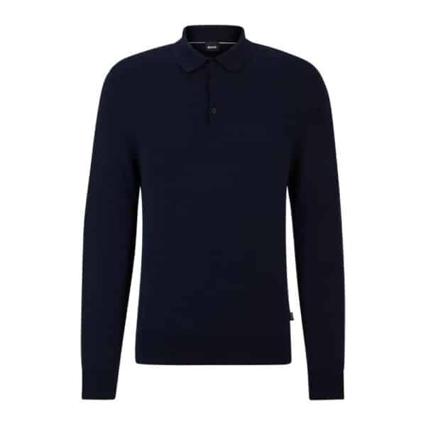 A distinctive sweater cut to a straight fit by BOSS Menswear, crafted in soft jersey with a polo collar. For our BETTER BOSS products, we always use at least 60% better raw materials. This product is made with 100% organic cotton. Our organic standards do not allow the use of synthetic fertiliser, pesticides or genetically modified seeds.