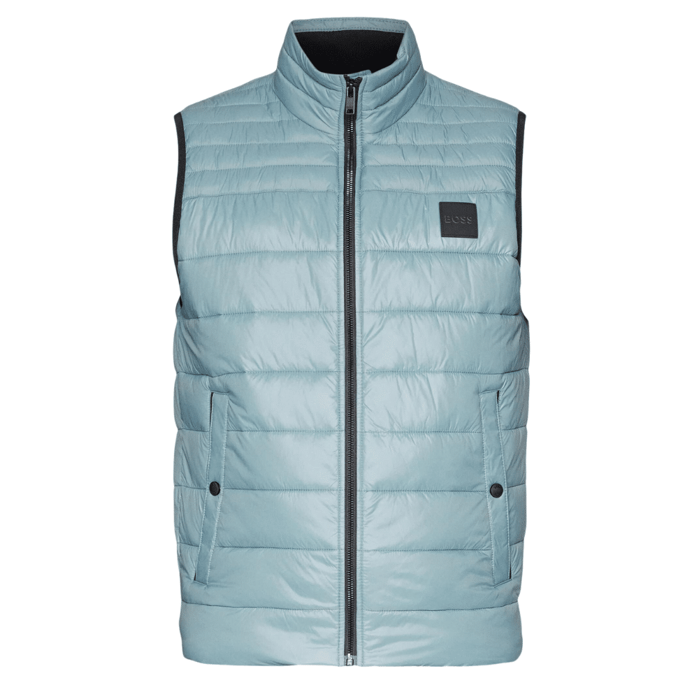 This mixed material Green gilet is part of the BOSS Menswear Responsible collection and features two vertical press-closure front pockets and a full-length front zip closure. A contrasting orange logo patch on the left chest finishes the look in casual BOSS fashion.