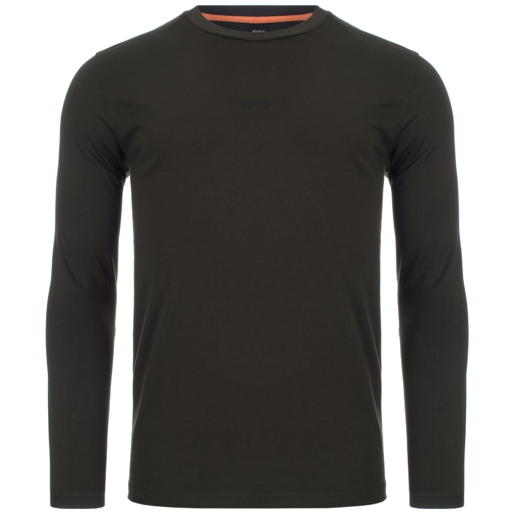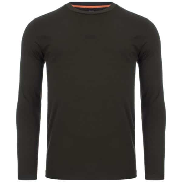 An essential Long Sleeved T-shirt crafted in stretch cotton by BOSS Menswear. Cut to a regular-fit, this T-shirt is detailed with a BOSS logo at the centre chest using a five-layer print in a rubberised finish. Create a modern layered look with this stylish easy to wear piece.
