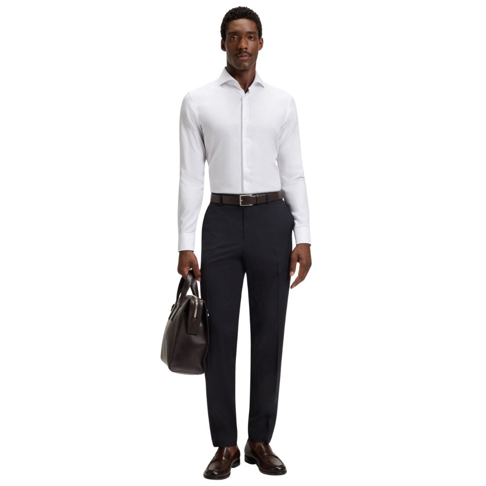 The BOSS H-Genius Slim Fit Trousers in Washable Wool combine sharp tailoring with modern practicality. Crafted from premium washable wool, they offer a sleek, slim silhouette with effortless comfort and easy care. The refined design and versatile neutral tone make them ideal for both professional and smart-casual outfits. Perfectly paired with shirts, knitwear, or blazers, these trousers provide a sophisticated, polished look with everyday convenience.