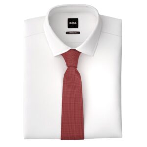 A timeless soft pink tie by BOSS. Featuring a satin-like look and feel, this 7.5cm-wide tie is jacquard woven in pure silk with a solid structure. Round off an eveningwear ensemble with this elevated accessory.