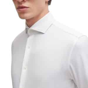 A slim-fitting shirt by BOSS Menswear crafted in performance-stretch material with a subtle structure and topped with a spread collar.