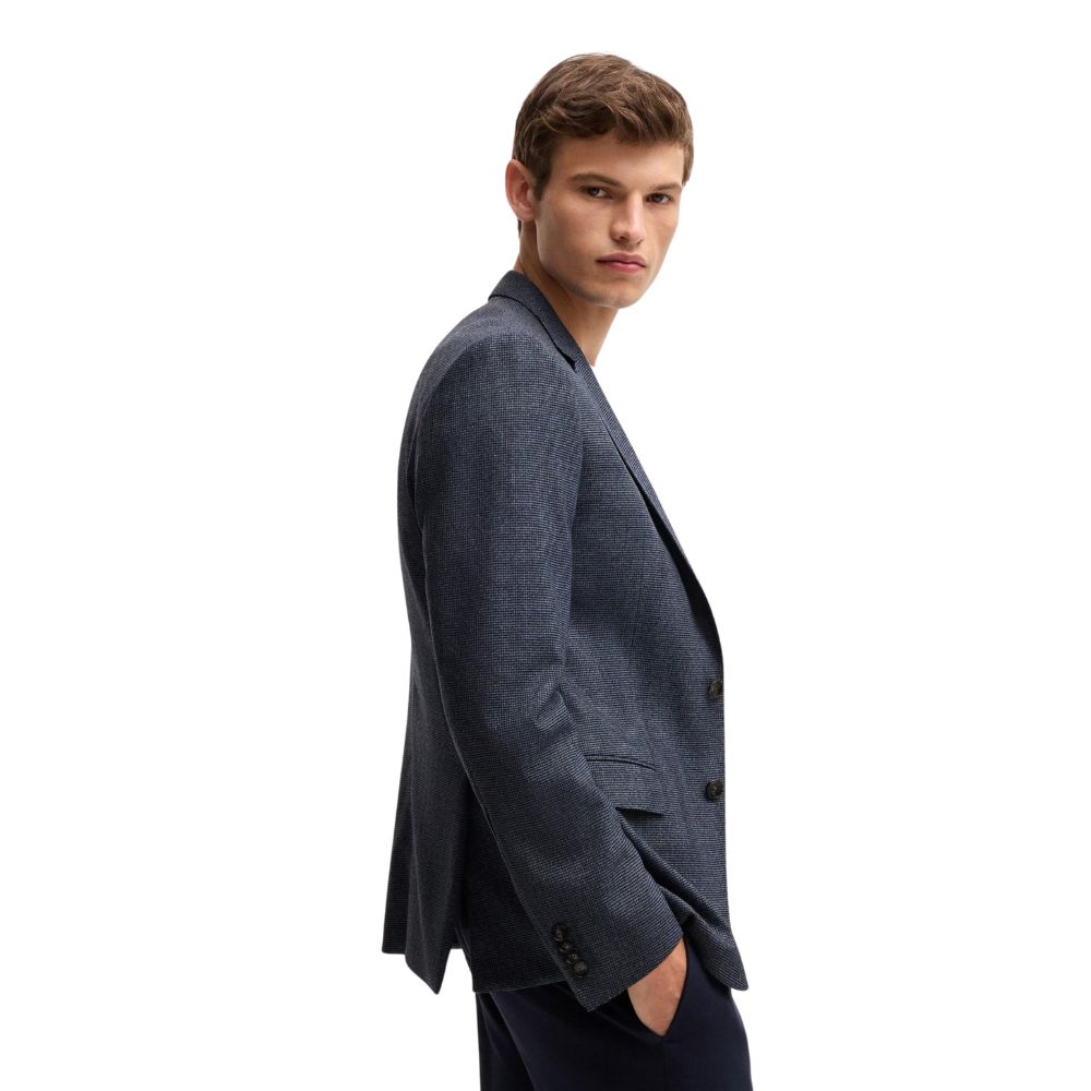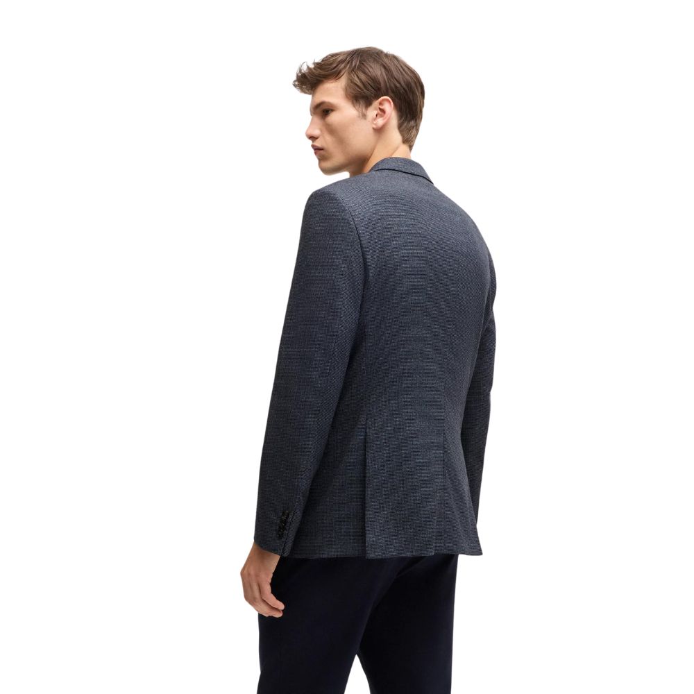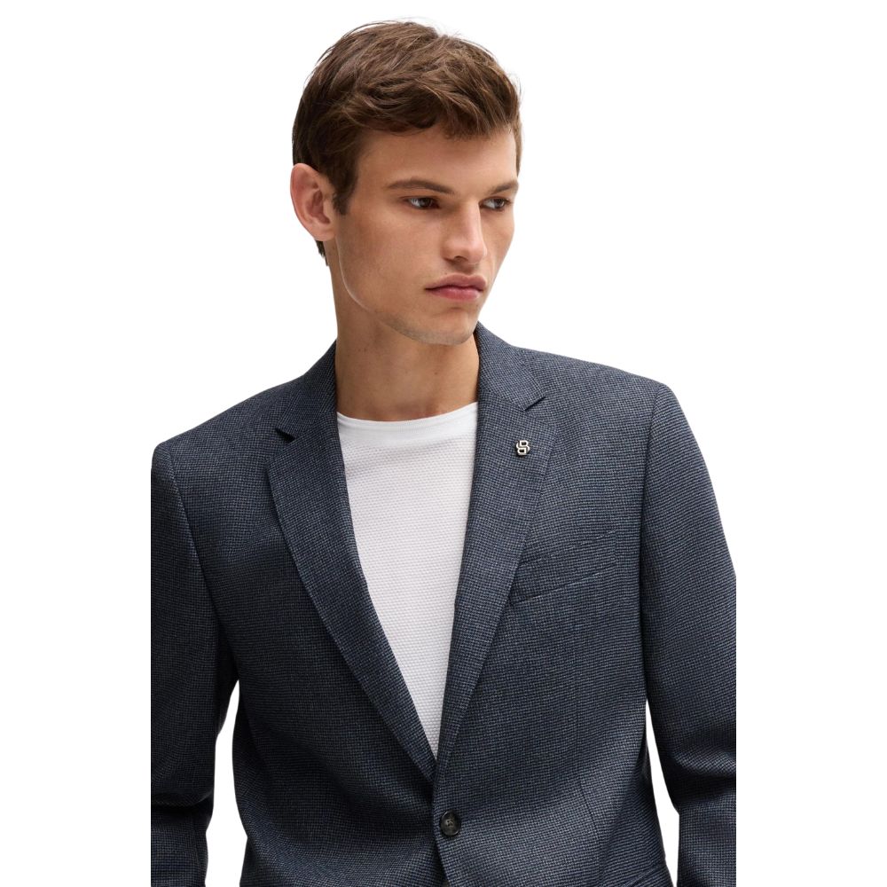 BOSS Hutson Dark Blue Slim-Fit Jacket in Micro-Patterned Stretch Wool