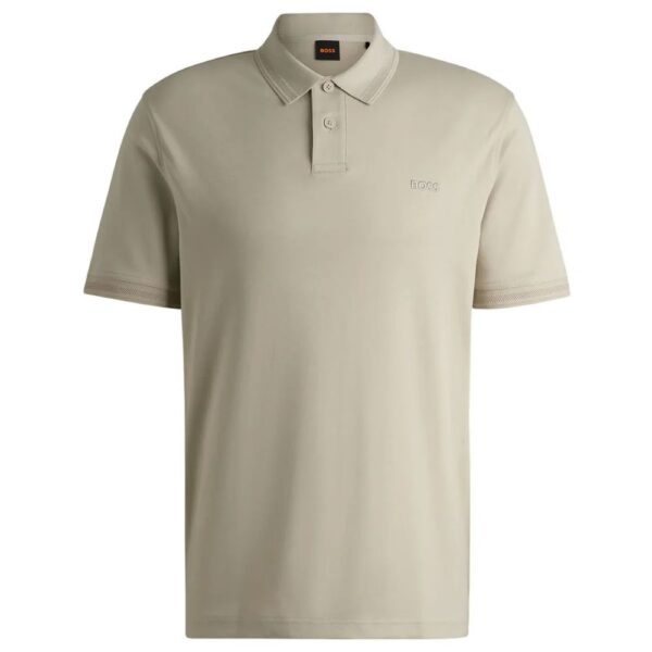 The BOSS Interlock Short Sleeve Beige Polo Shirt is a refined and comfortable option, crafted from high-quality interlock cotton. It features a classic polo collar, a three-button placket, ribbed cuffs and subtle branding. The shirt’s soft, breathable fabric makes it perfect for both casual and smart-casual wear.