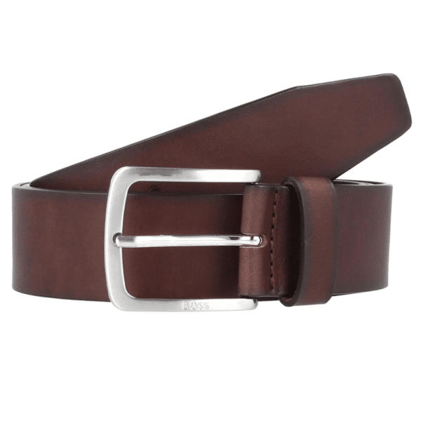 A 4cm belt crafted in vegetable-tanned Italian leather with a logo-engraved pin buckle by BOSS. For the best fit, we advise ordering a belt one size larger than your waist size.