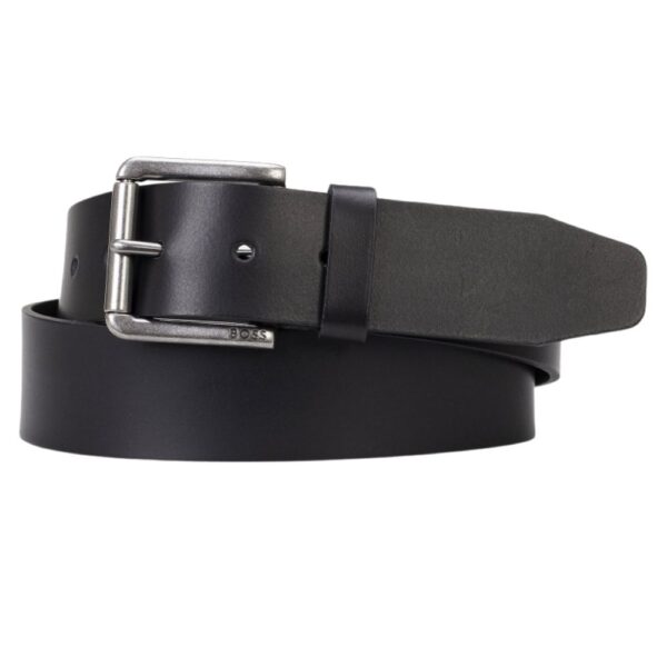 A versatile Black 4cm belt by BOSS, designed in smooth leather with a logo-engraved roller buckle.