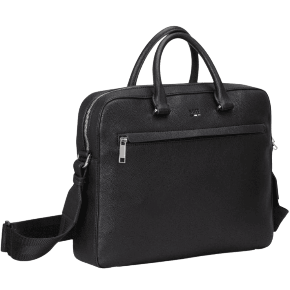 A flawless document case by BOSS crafted in grained faux leather with a signature-stripe accent, embossed branding and a detachable shoulder strap.