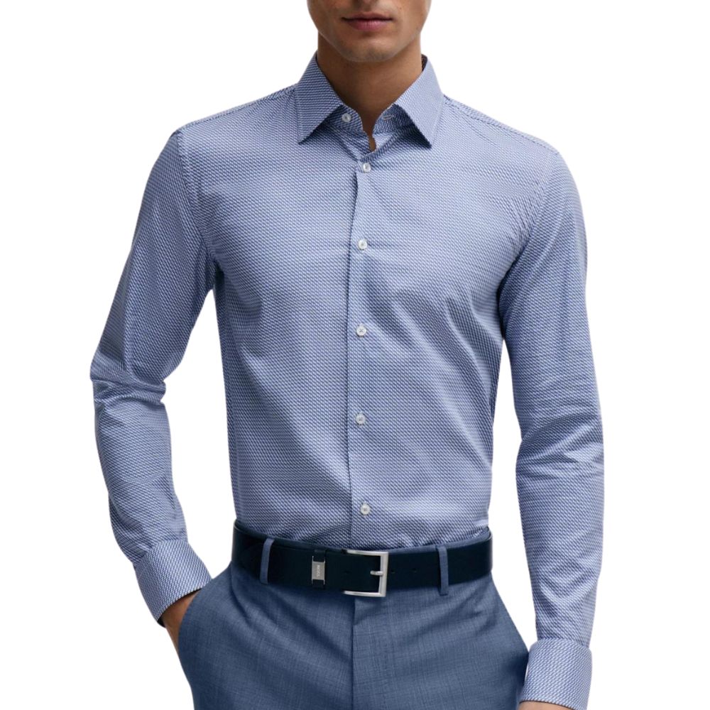 An advanced business shirt by BOSS Menswear, cut to a slim fit in structured stretch cotton with a modern print and antibacterial finishing.