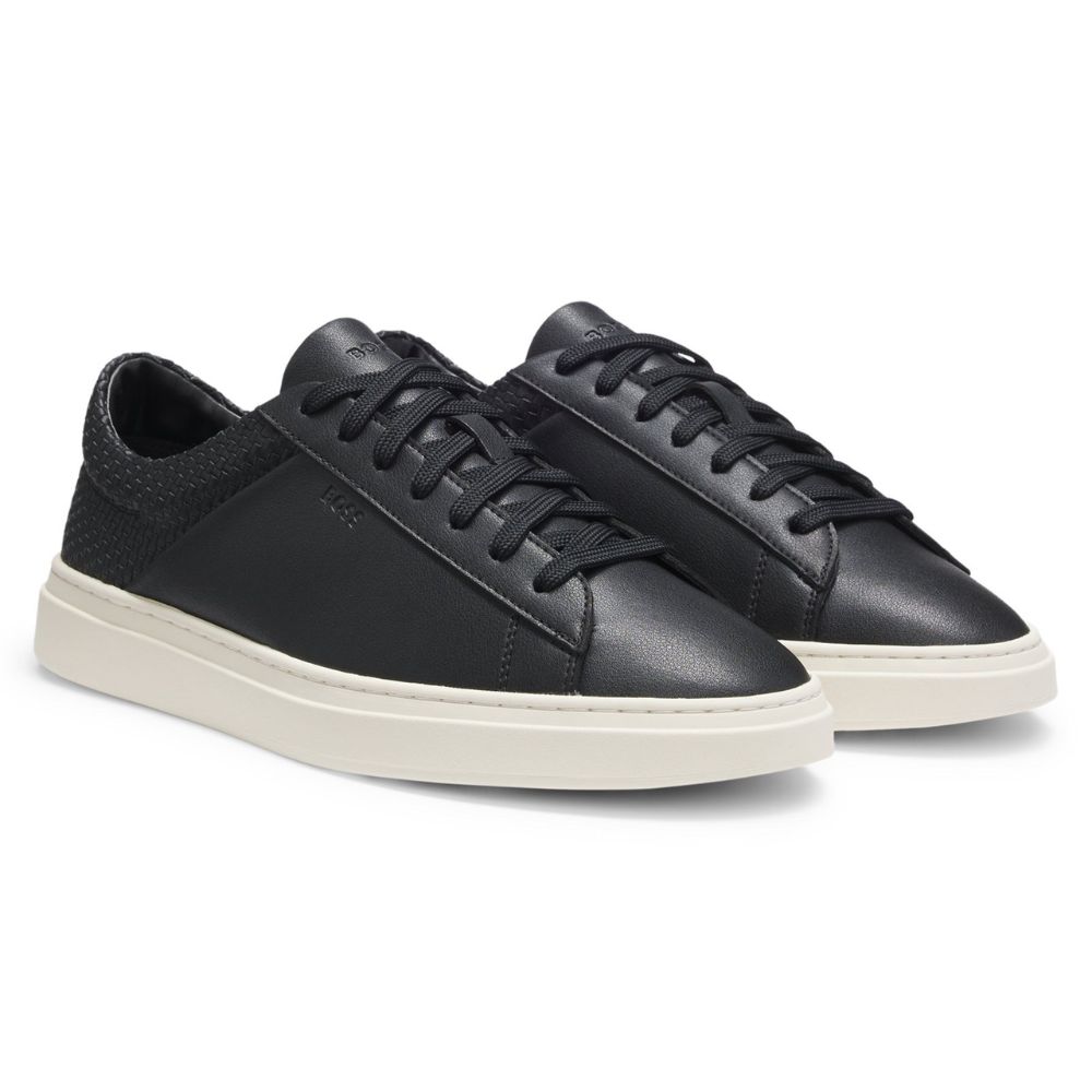 Mixing woven and grained effects, these BOSS Menswear trainers add creative style to any look. Made with rich leather. Comfort-boosting insole. Subtle logo details.