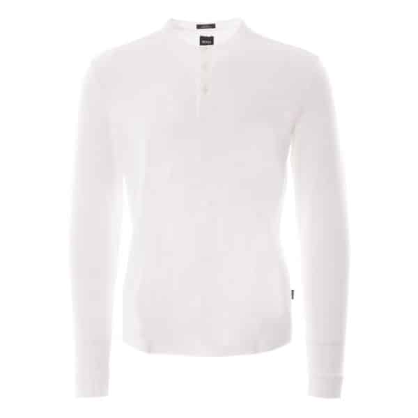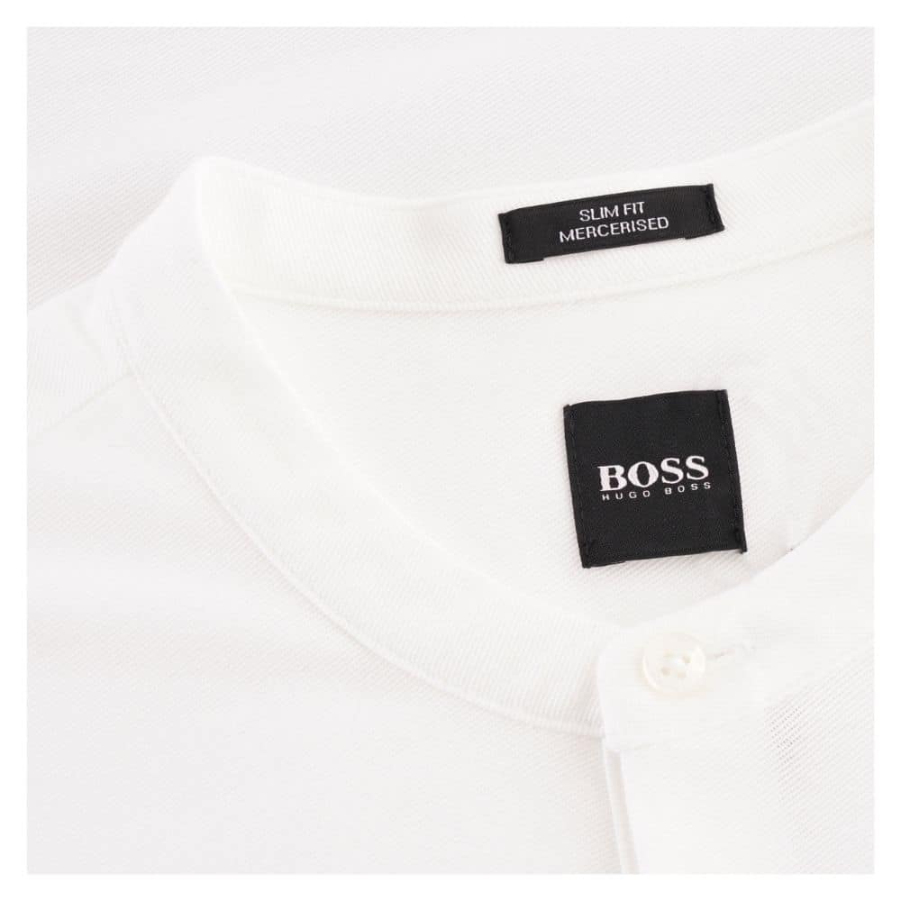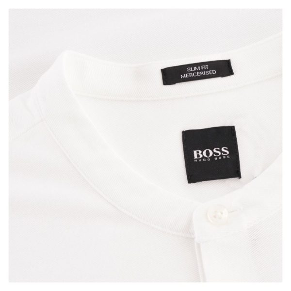 This Mercerised cotton long sleeved shirt by BOSS Menswear gives a soft and comfortable feel. The shirt comes in a slim fit with three button closure and Mandarin collar, and BOSS label on the left side of the shirt.