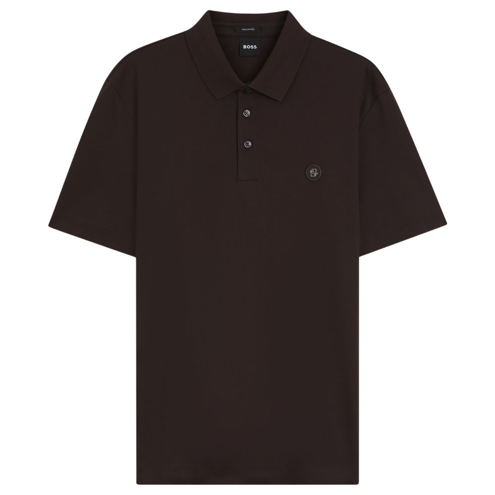 BOSS Mercerised Cotton Brown Polo Shirt With Double B Monogram