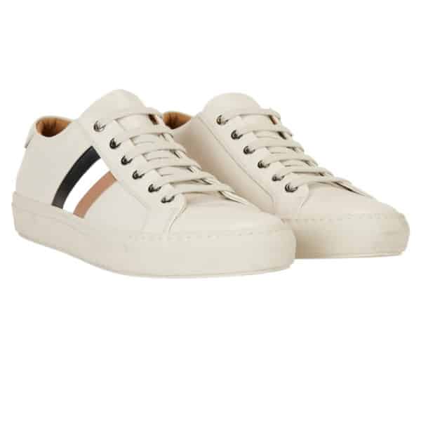 BOSS Mirage Open White Leather trainers by BOSS with a low profile and soft cognac lining. Set on a rubber outsole, these tennis-style trainers are crafted in smooth leather and trimmed with a signature stripe at the side panel.