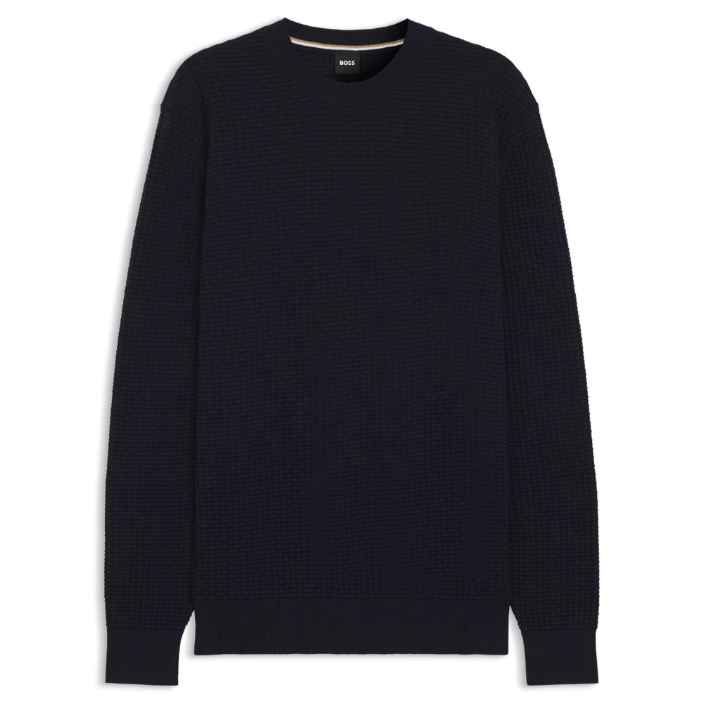 Offering classic elegance and expert craftsmanship, this BOSS Menswear sweater is knitted with a rich structure in soft cotton. Regular fit. This product contains at least 80% better raw materials. This piece is made with at least 80% cotton derived from regenerative agriculture. Regenerative agriculture prioritises the preservation and restoration of natural environments, aiming to enhancebiodiversity, maintain water quality, and improve soil health.