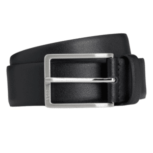 Men’s BOSS boxed leather reversible belt – 1 side in embossed black and the other in plain dark brown.