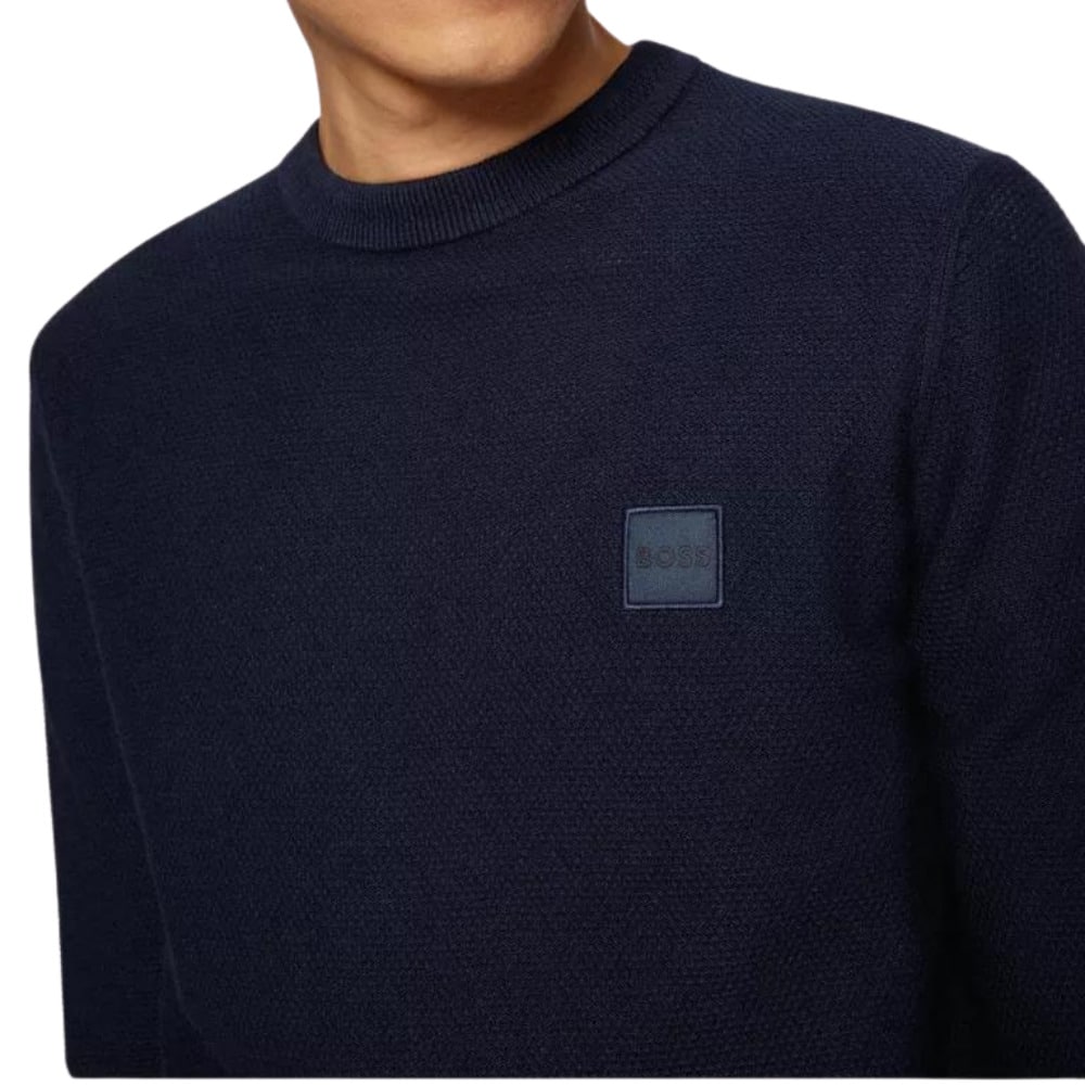 BOSS ORANGE NAVY REGULAR-FIT SWEATER WITH LOGO PATCH