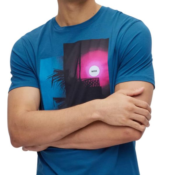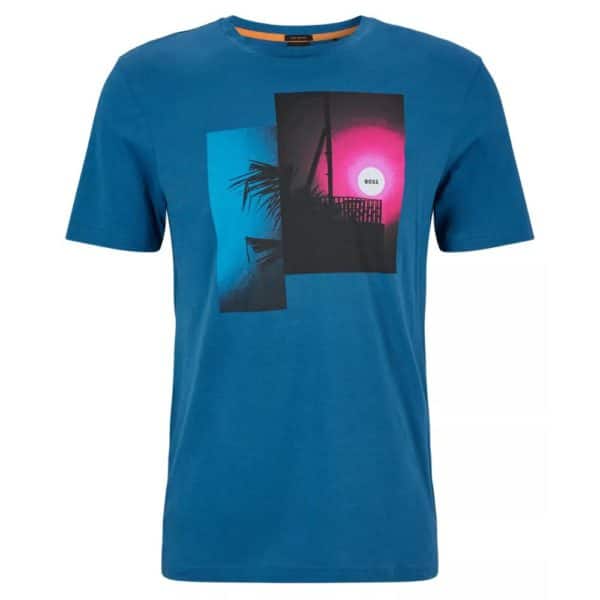 A short-sleeved T-shirt in a straight fit by BOSS Menswear. Printed with colourful artwork at the chest, this crew-neck T-shirt is crafted in Pima cotton for everyday comfort. The print incorporates BOSS branding for a signature look.