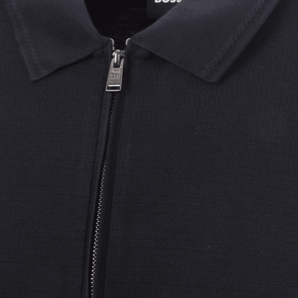 A finely detailed Navy polo shirt by BOSS Menswear. Crafted in super-soft mercerised cotton with a woven structure at the front panel, this luxe polo shirt has a zipped placket for a sporty finish. The slim fit creates a clean silhouette.