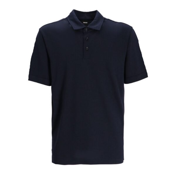 A slim-fitting Dark Blue polo shirt with short sleeves by BOSS Menswear, crafted in soft piqué with a tonal logo patch. By purchasing this product, you are contributing to protecting the environment and sustainable cotton farming in Africa. CmiA is committed to improving the living and working conditions of African cotton farmers and to preserving nature.