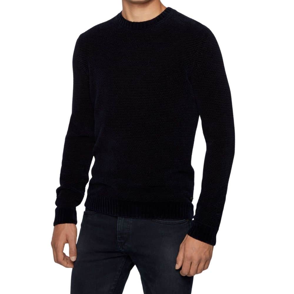 An easy wear crew neck sweater in a regular fit by BOSS Menswear. Ideal for building a layered look, this sweater is knitted in cotton blend yarns with a velvet like feel and topped with a ribbed crew neckline with a signature trim at the interior. The fabric is a textural structure for added interest. Style name Amois