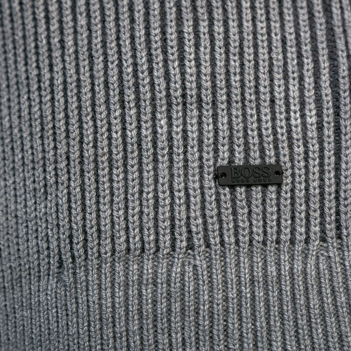 This regular fit crew neck jumper by BOSS Menswear has contrasting colour vertical ribbed knit design. Ribbing to the collar, cuffs and waistband. BOSS logo tag to the waistband. The perfect jumper to team up with Boss chinos or jeans