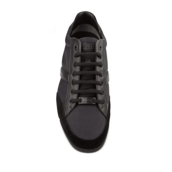 These trainers by BOSS Menswear offers great sporty style. The fabric lining ensures moisture-wicking functionality and odour control. Created with a smooth-leather upper and flexible rubber sole, these sporty trainers are enriched by stitch-and-turn seaming, perforated elements and thermo-bonded facings in a rubberised texture. Logo accents at the side panel and tongue of this lace-up pair add a branded finishing touch to this sporty pair.