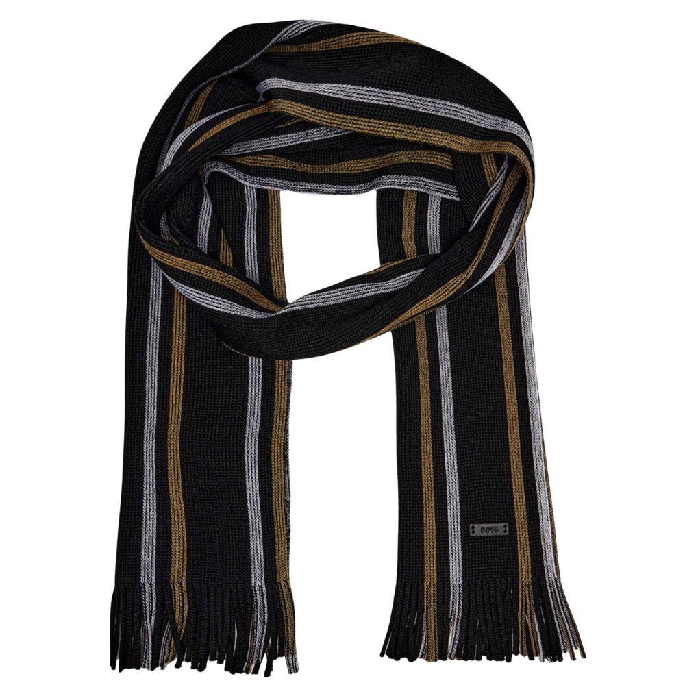 Hugo Boss scarf, created with a raschel knit and a double-faced effect. Brushed all over for warming softness, this oversized scarf is crafted in a wool blend and trimmed with a logo plate. Fringing at the ends emphasises the texture of the fabric.