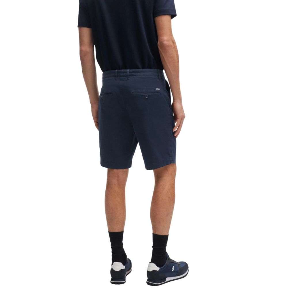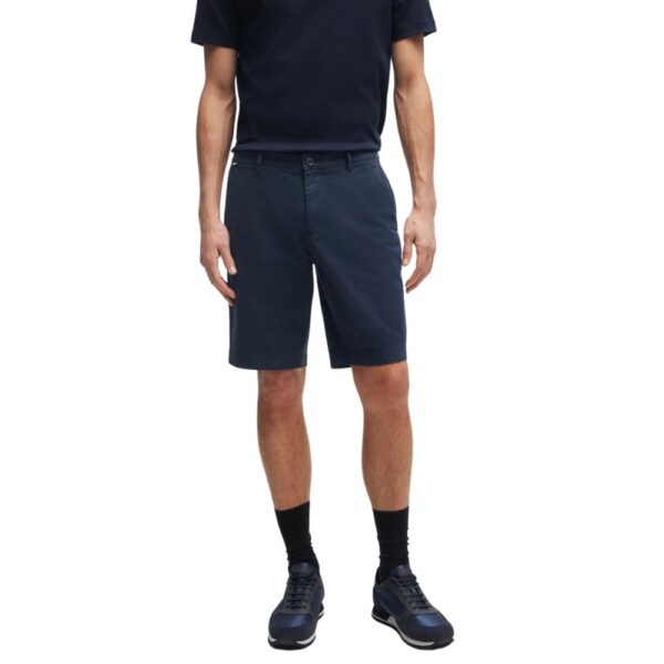 Essential shorts by BOSS Menswear, cut to a narrow fit with a regular rise. Featuring belt loops, these slim fit shorts are crafted in stretch-cotton satin and dyed for rich colour. fabric tape at the inner waistband adds a refined finish to this effortless pair.
