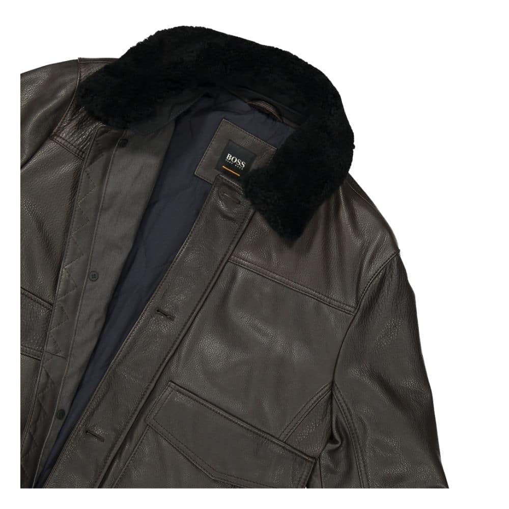 This leather jacket by BOSS Menswear has a milled features and a detachable shearling collar. It has two large front pockets with flaps and a quilted lining. It also comes in a comfortable slim fit.